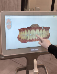 当院では初診相談にお越しいただいた際に、iTeroで撮影した画像をもとに説明させていただいております。