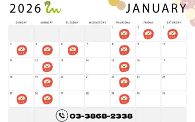 1月の日曜診療日は、 11日.18日となります。 それ以外の日曜日、毎週月曜日と木曜日、1日から6日までは休診になります。 休診中のお問い合わせはメールにて承っております。 下記アドレス宛にご連絡ください。…