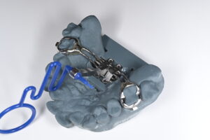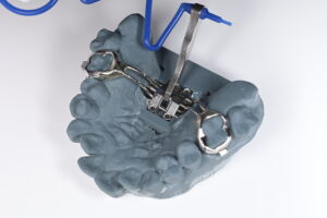 ・装置の基部がミニスクリュー(4本程度)で上顎骨(口蓋骨)に直接固定されます。